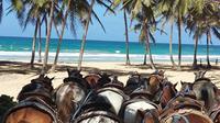 Excursión a caballo desde Punta Cana: el mejor tour de medio día. Te recogerán en tu hotel para este paseo a caballo de 4 horas en una playa remota e inmaculada del Caribe. Cuente con un guía profesional para explicarle en una sesión informativa de seguridad completa que este no es un recorrido a caballo común y corriente. Este tour para grupos pequeños lo lleva lejos de su resort a los límites más al norte de Punta Cana, a los caballos y kilómetros de playa virgen. Elija uno de los 2 horarios de salida cuando haga la reserva.